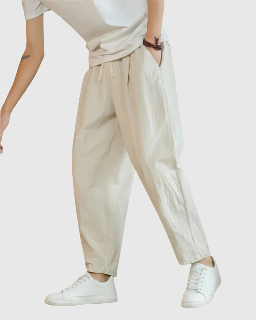 Tyto bavlněné kalhoty dokonale kombinují eleganci s každodenní praktičností, což z nich činí všestranný doplněk do každého šatníku.